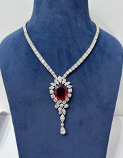 Majestic Ruby‑Tone Lab Diamond Necklace & Earrings Set