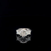 Exquisite multistone ring featuring a brilliant-cut round diamond as the centerpiece, flanked by additional diamonds. The stones are masterfully set in a lustrous white gold band. This elegant ring showcases a timeless design, perfect for adding a touch of sophistication to any occasion.