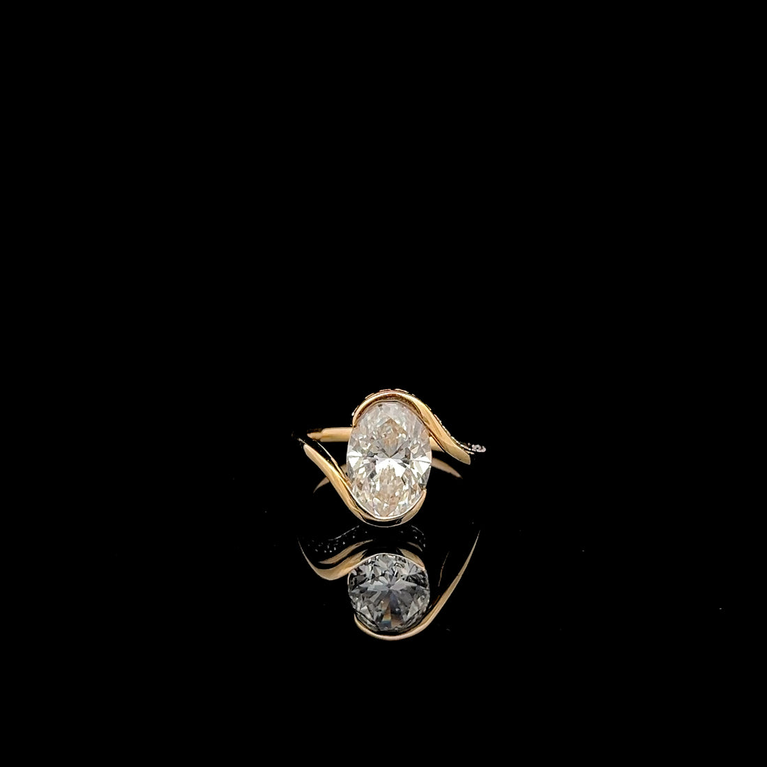 Discover the allure of this stunning gold ring featuring a captivating oval diamond. Its unique design elegantly showcases the brilliance of the stone, making it a perfect statement piece for any occasion. Whether you're dressing up for a special event or adding a touch of luxury to your everyday look, this ring is sure to turn heads.