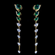 These stunning earrings feature an exquisite combination of vibrant green gemstones and sparkling white diamonds. Perfect for adding a touch of elegance to any outfit, they are set in a delicate gold frame that enhances their beauty.