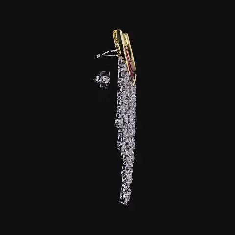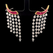 These stunning earrings feature a captivating design with vibrant rubies and sparkling diamonds. The intricate detailing and luxurious materials make them a perfect accessory for any special occasion. Elevate your style and make a statement with these exquisite pieces.