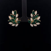Adorn your ears with these exquisite earrings featuring a harmonious blend of lush green stones and sparkling white gems. Perfect for any formal event, their intricate design adds an elegant touch to your look.