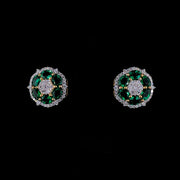 These exquisite emerald stud earrings radiate sophistication and elegance. Each earring features a cluster of dazzling green emeralds encircled by shimmering diamonds, creating a captivating floral design. Perfect for special occasions or adding a touch of luxury to everyday wear.