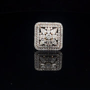 Elevate your style with this breathtaking diamond-encrusted ring featuring an ornate design. The symmetrical arrangement of dazzling diamonds within its geometric form offers both sophistication and charm, making it an ideal gift or personal indulgence.