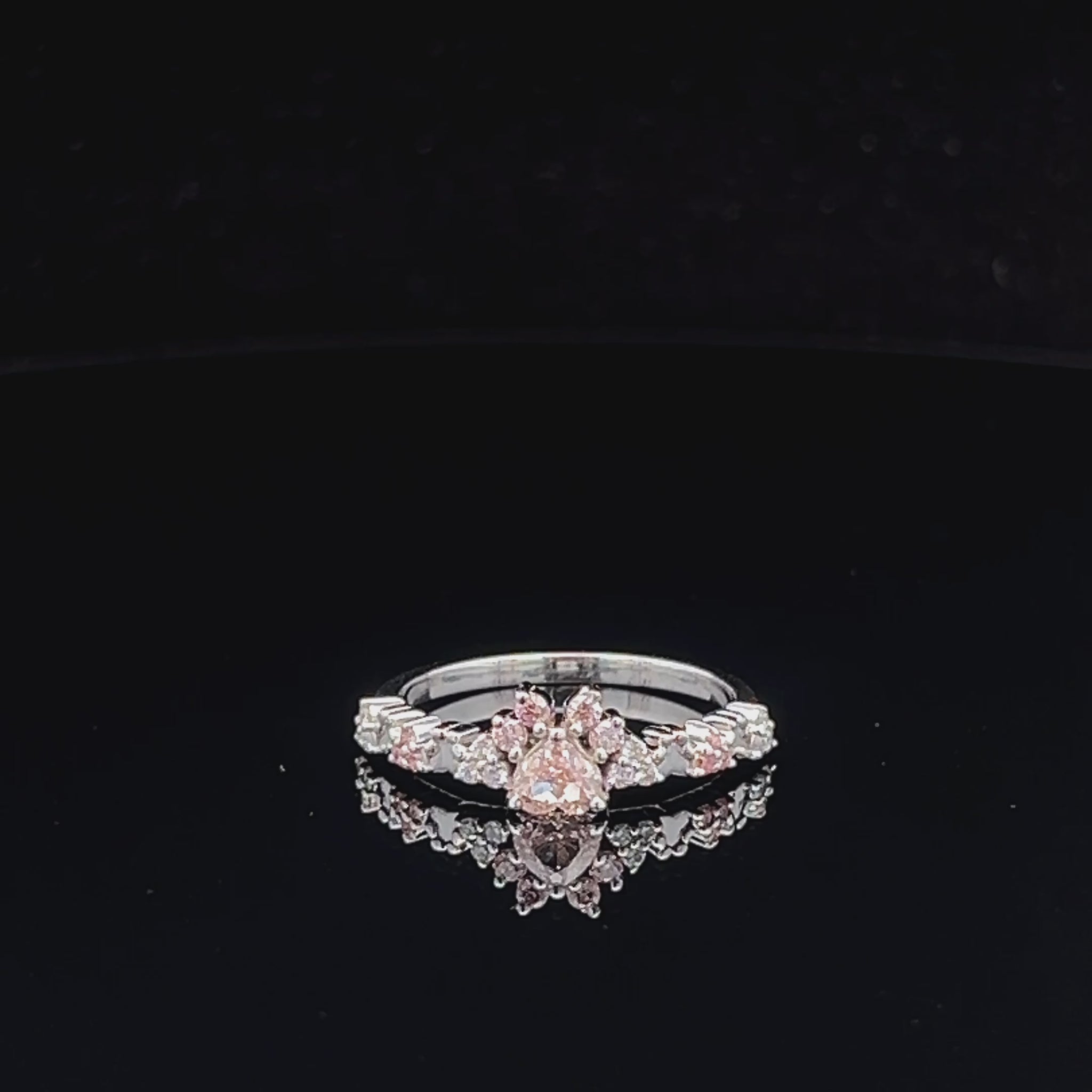 Embrace the enchanting allure of this multistone ring, crafted in lustrous white gold over. The centerpiece is a heart-shaped fancy pink diamond, boasting a brilliant cut that maximizes its radiant sparkle. A symphony of smaller diamonds accentuates the shank, creating a mesmerizing play of light. The diamond’s exceptional polish and symmetry enhance the ring's sophisticated appeal.