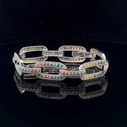 This stunning bracelet features a unique chain-link design adorned with sparkling multicolored gemstones. Perfect for adding a touch of elegance and sophistication to any outfit, this piece is sure to make you stand out at any event.