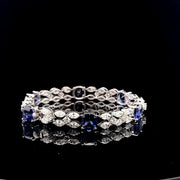 This stunning bracelet features a captivating design adorned with rich sapphire stones and sparkling diamonds. The intricate craftsmanship highlights the elegance of each gemstone, making it a perfect accessory for any occasion. Wear it to elevate your style and make a lasting impression.