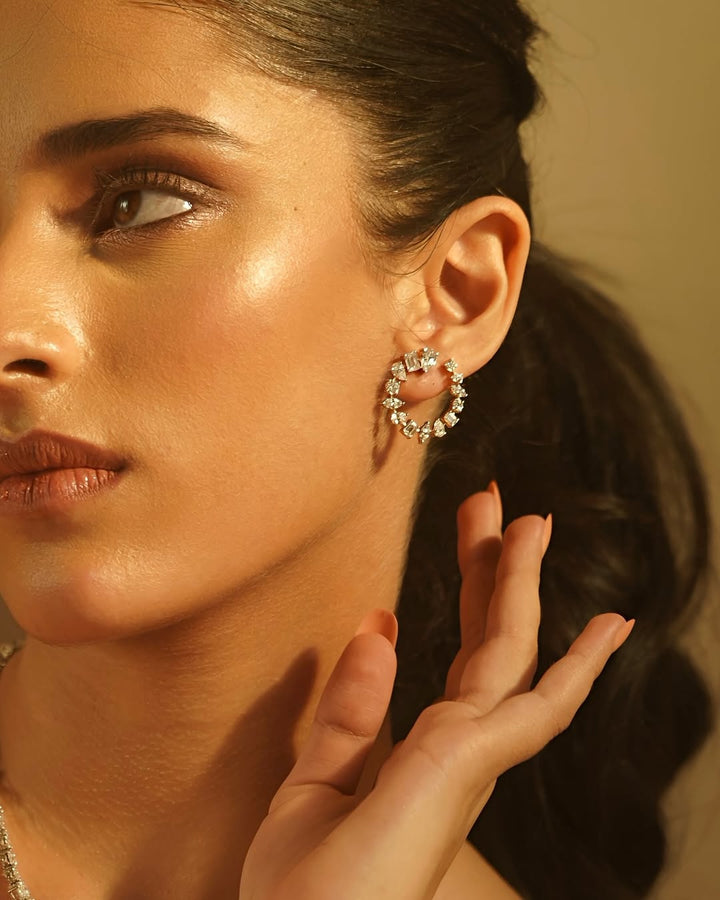 STARDUST DIAMONDS Geometric Halo Lab‑Grown Diamond Necklace & Drop Earrings SetRegular price Rs. 549,000.00