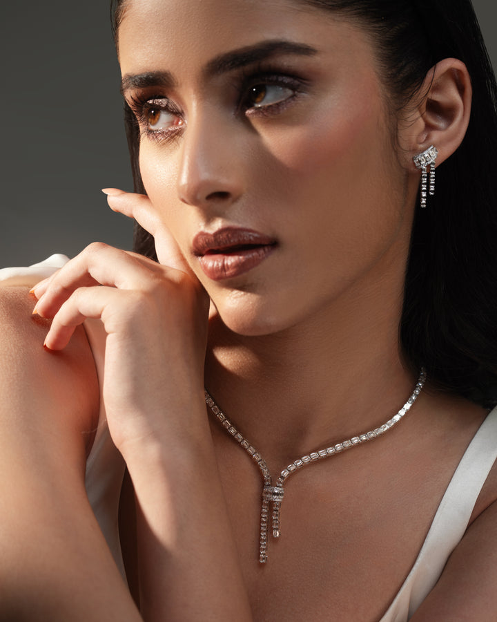 STARDUST DIAMONDS Radiant Harmony: Emerald-Cut Lab-Grown Diamond Necklace & Earrings SetRegular price Rs. 618,000.00
