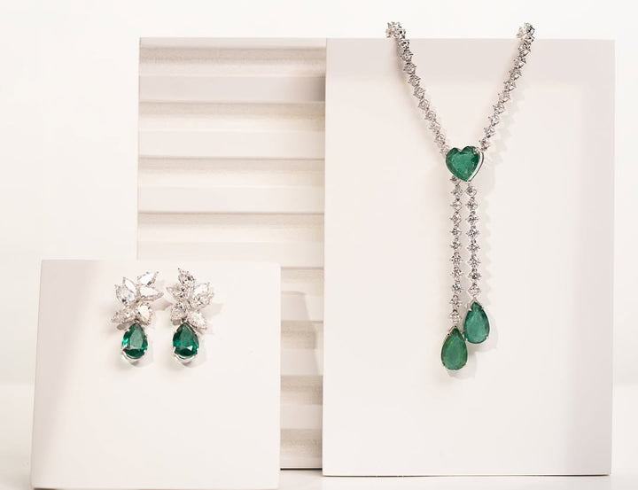 STARDUST DIAMONDS Regal Emerald and Diamond Necklace and Earrings SetRegular price Rs. 1,360,000.00