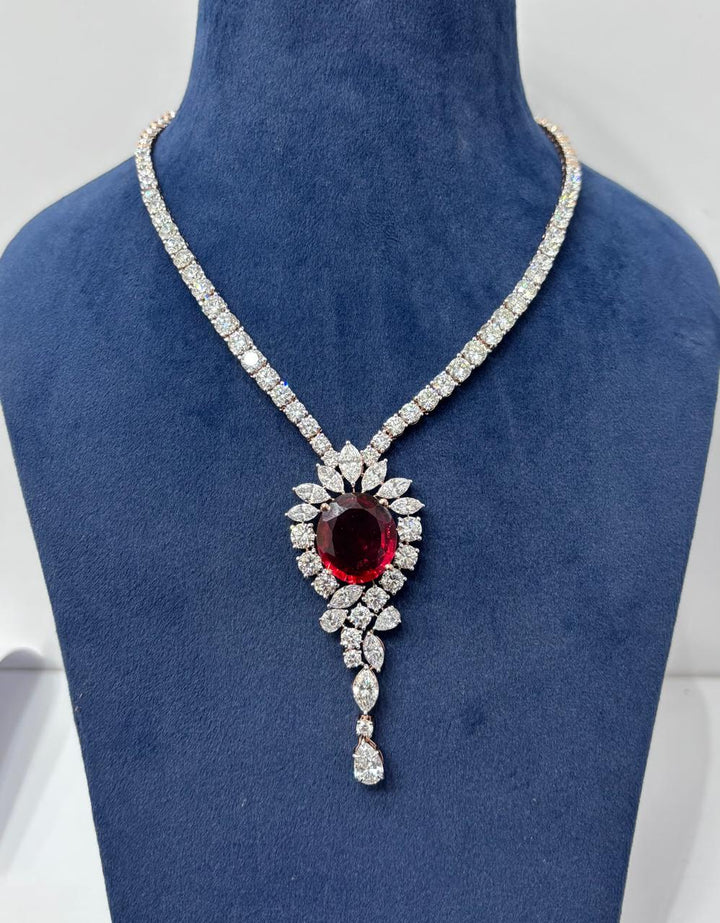 STARDUST DIAMONDS Majestic Ruby‑Tone Lab Diamond Necklace & Earrings SetRegular price Rs. 857,000.00