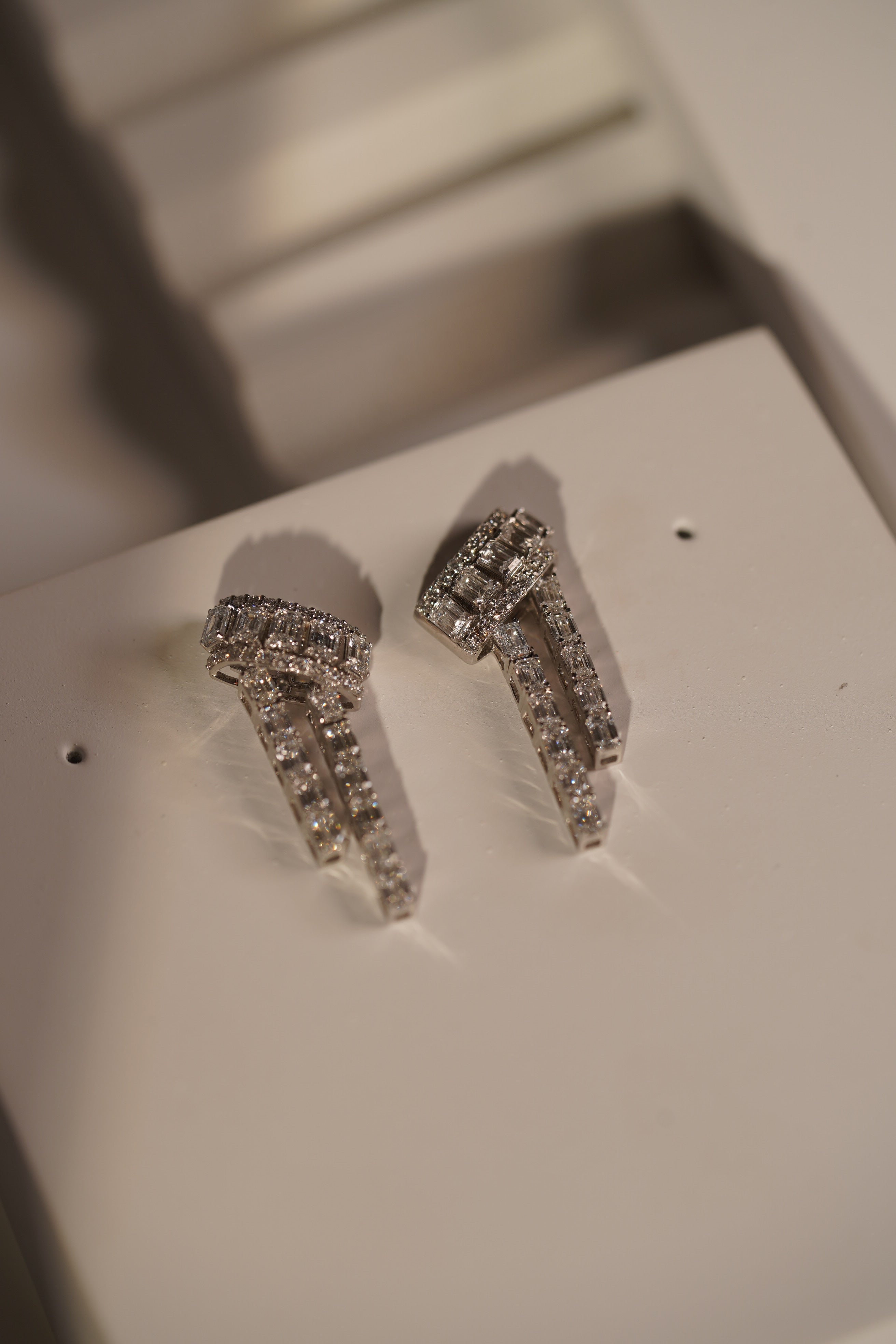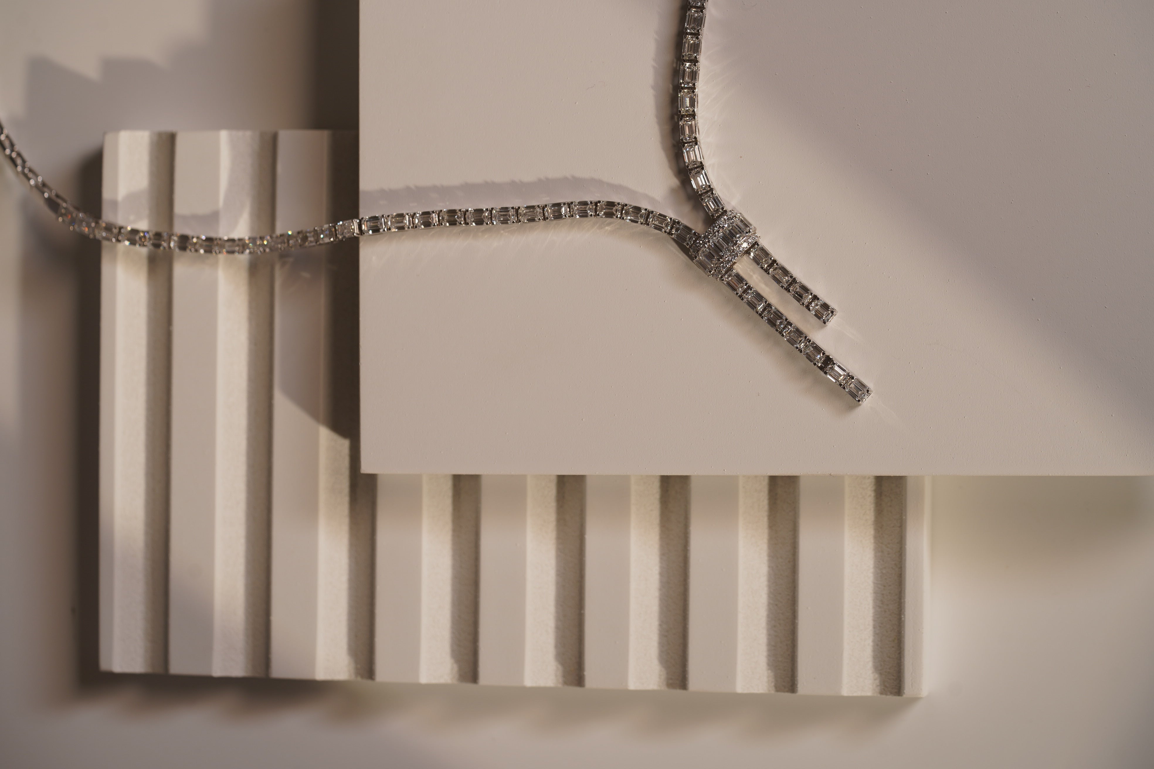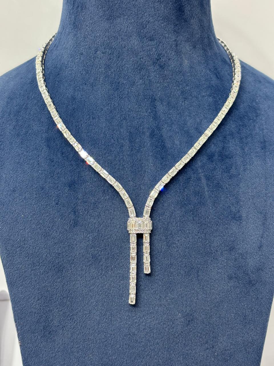Radiant Harmony: Emerald-Cut Lab-Grown Diamond Necklace & Earrings Set - 14KT / White gold